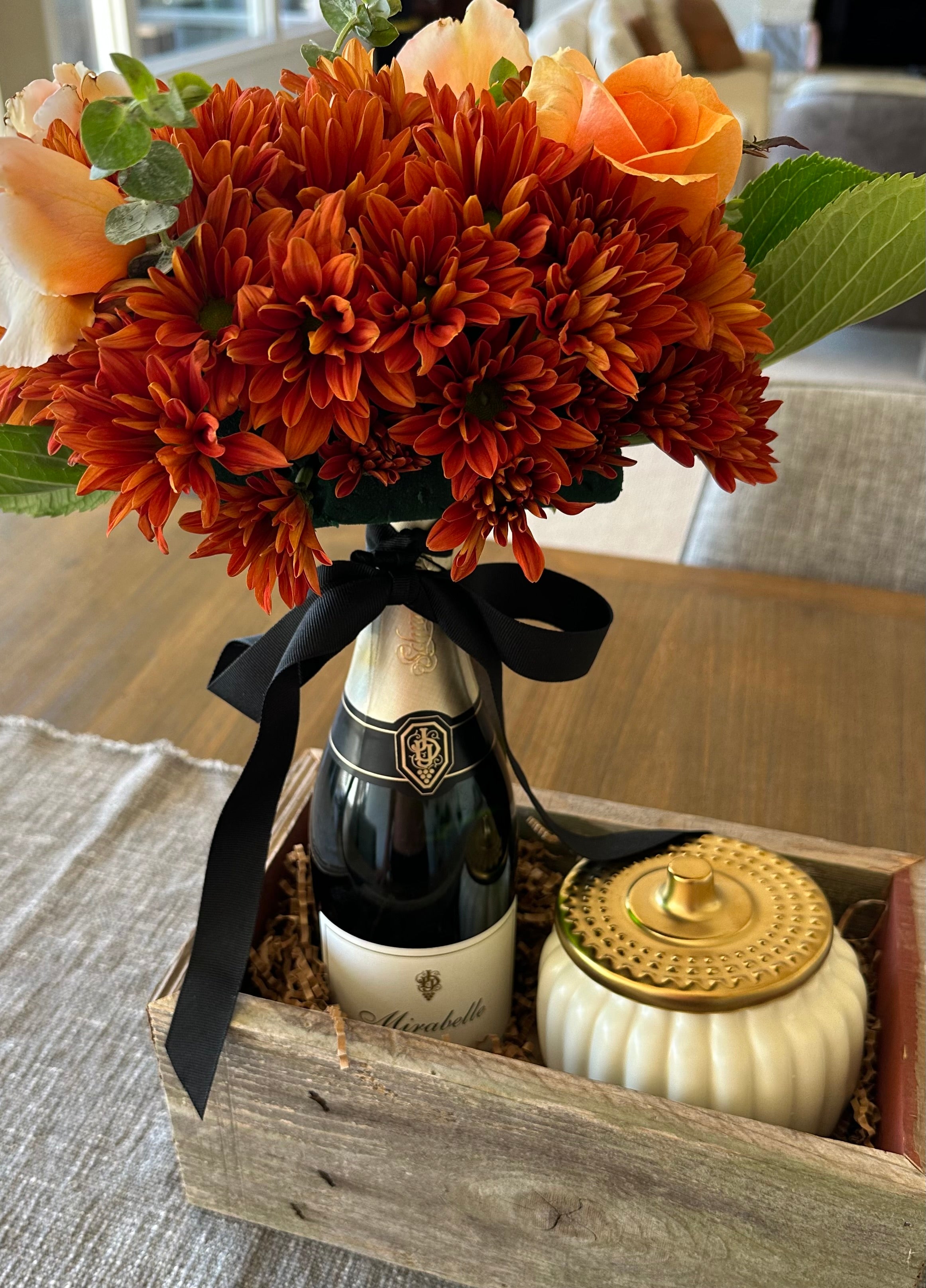 Do you have something or someone to celebrate? Order this unique gift by Wed for Friday delivery. (Local delivery only) Includes a custom bouquet design on top of a full...